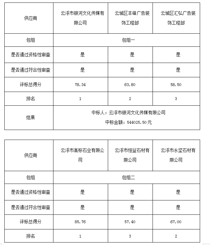 1:中標(biāo)供應(yīng)商名稱 云浮市銀河文化傳媒有限公司 法人代表 唐海群 地址 云浮市云城區(qū)高峰羅桂橋新桂區(qū)45幢9號(hào)一層一卡商鋪(包組一)